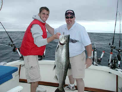 is Perry bringing in the days catch...a nice king Salmon at 18.5